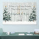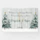 Beau mariage d'hiver "Bienvenue à notre réception de mariage" bannière avec pins aquarelles, bouleaux blancs, neige et étoiles étincelantes. Personnalisez avec votre message et vos noms. Idéal pour les fêtes de Noël ou le Sweet sixteen Winter Wonderland.