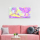 OEuvre abstraite de formes et de motifs violets, roses et jaunes, imprimée sur une toile tendue lustrée. — L'oeuvre est protégée par le droit d'auteur de l'artiste, Christina Spiegeland.