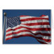 Drapeau américain à rayures et étoiles agitant dans le vent - carte entièrement personnalisable.