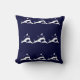 une partie de l'océan à thème décore MED STRIPE blanc DOLPHINS sur le bleu marine coussin d'un côté et marine et blanc bande sur le dos.