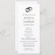 Notre programme de mariage chic en noir et blanc présente les détails de votre cérémonie en lettrage élégant, accentué par une illustration de style dessiné à la main d'un groupe mariage et d'une bague de fiançailles diamant. Reverse side liste les membres de votre mariage avec des champs de texte facilement modifiables, surmonté d'une minuscule illustration de bouquet. Utilisez les champs modèle pour ajouter les informations de cérémonie et de fête de mariage, puis cliquez sur "Personnaliser" pour repositionner les éléments si nécessaire.