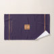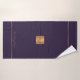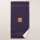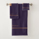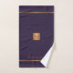 Serviette de bain monogrammed de luxe tendance, avec un carré de parties scintillant métallique en cuivre faux or et des lignes sur un arrière - plan violet élégant et élégant. + Personnalisez-le avec votre nom ou nom de famille et nom monographique initial.