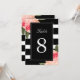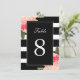 Bandes noires et blanches avec numéros de table aux pivoines - Créé par Colourful Designs Inc. Copyright 2013-2016. Tous les textes peuvent être modifiés.