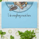 A quirky bandicoot cartoon on a kitchen towel or tea towel. Use "Edit this design" to change the "I do everything around here" text and create a unique, customized item. A kitchen towel or tea towel for somebody who's always busy in the kitchen; featuring a busking bandicoot one man band dressed in a waistcoat and spotted scarf, and dancing while playing several instruments: a harmonica or mouth organ, bass drum, high hat, cymbals, maraca and a concertina (or squeeze box). A bandicoot is a small marsupial native to Australia and New Guinea.