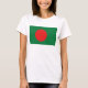 Die Vorderseite dieses T - Shirt zeigt mutig die Flagge von Bangladesch mit ihrem markanten Offset-Rotkreis auf grünem Hintergrund. Hinter dem Bild befindet sich eine attraktive Landkarte von Bangladesch.