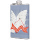 Die Dove, die in leuchtenden Sternenstrahlen gebrannt ist, trägt ein leuchtend rotes Banner in ihrem Schnabel, das mit den Worten "Friede, Liebe, Freude" markiert ist, in glänzenden Sternen.
