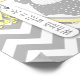 Grauer und weißer Zickzack Druck mit Kontrast aus Kornseide; Polka Dot Jumper mit gelber Tutu- und Bogen-Krawatte und 3D-Look Band und Banner für Gender zeigen Baby Dusche Party.