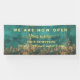 Bannière de luxe nous sommes ouverts Bannière de style vintage avec fond vert émeraude et or avec typographie script et option d'adresse. Parfait label d'adresse élégant et minimaliste vert émeraude or pour technicien en ongles, artiste maquilleuse, coiffeur, entraîneurs et consultants.