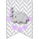 Bannière À Fanions Baby shower d'éléphant gris mauve et blanc