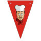 Chef avec casquette et collier rouge sur arrière - plan rouge.