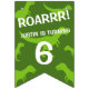 Dinosaure vert magnifique thème dinosaure fête d'anniversaire Bunting Flags. Un design animal préhistorique amusant pour les enfants. Personnalisez avec nom et âge. Impression silhouette cool T-rex.