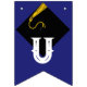Graduation fête décoration de fête avec casquette de graduation classique noir et or sur un arrière - plan bleu.