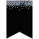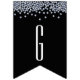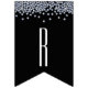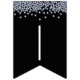 Un drapeau mariage moderne, simple mais beau, qui flotte en noir et blanc avec des accents bleus. En haut des drapeaux sont des étincelles de parties scintillant à effet de diamant.