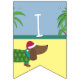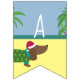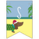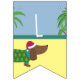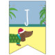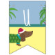 Ce joli bunting comporte un joli dachsund sur une plage de palmiers. Découvrez nos articles de table assortis et nos invitations pour rendre vos fêtes de Noël uniques en juillet.