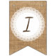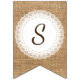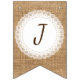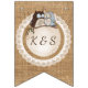 Super mignon design décontracté et rustique mariage dispose d'une texture burlap look arrière - plan sur chacun des drapeaux. Certains drapeaux sont ornés d'une dentelle en cercle blanc avec deux chouettes chou mignons assis sur une branche au sommet d'un cercle intérieur beige. Les chouettes sont marron avec garniture bleu clair et bleu clair avec garniture beige. À l'intérieur de ces cercles avec les chouettes est un texte personnalisable pour ajouter votre propre libellé et certains peuvent être customisés avec les initiales de prénom des couples. Les autres drapeaux ont un cercle blanc clair avec du texte à l'intérieur qui sort Just Married. Matching Owl Always Love You Décontracté Wedding Invitations et cartes RSVP également disponibles.