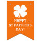 Drapeaux heureux faits sur commande verts et de l'orange quatre de feuille de trèfle de Jour de la Saint Patrick de partie d'étamine de bannière. Conception irlandaise de fierté avec le message personnalisé. Les approvisionnements de partie d'amusement et les accessoires de do-it-yourself pour St Patty parties. Le décor d'amusement pour la maison, bureau, pub, barre, café, entreprise constituée en société, magasin, magasin, événement de surprise, anniversaire, mariage, baby shower, pendaison de crémaillère, célébrations, rassemblements, réunion, parties de costume qu'etc. ajoutent votre propre texte personnalisé à ceci le font vous-même modèle. Modèle moderne de typographie avec le logo chanceux de shamrock de charme. Faites vos propres 4 drapeaux de trèfle de feuille sur une ficelle. Gentil pour des enfants et des adultes. Changez la quantité pour obtenir le prix discount en vrac bon marché. Drapeau de couleurs de l'Irlande.