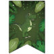 Les extrémités et le milieu présentent l'illustration originale d'un dinosaure vert Tyrannosaurus Rex / T-rex tandis que le texte dit : "Joyeux anniversaire" en couleur vert clair. Les bords ont un feuillage vert de feuilles de jungle.