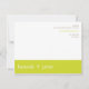 ColorScheme Invitation de réception de mariage contemporain. Cartes plates de 4,25" x 5,5" avec enveloppes blanches. Texte et bannière surlignés en chartreuse, couleur de la tendance de l'été 2011, sur fond blanc.