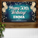 Banderole amusante pour l'intérieur ou l'extérieur, avec des ballons métalliques or festifs des deux côtés du design avec des confettis métalliques or brillant sur un arrière - plan bleu aqua texturé riche pour votre bannière d'anniversaire personnalisée. Ce produit sert aussi de merveilleux gardiens d'anniversaire.