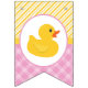 Éclaircissez votre fête avec cette adorable bannière d'anniversaire de canard en caoutchouc ! Dotés de canards jaunes gais et d'une palette de couleurs rose et jaune, ces drapeaux de bottes sont parfaits pour les anniversaires sur le thème du canard, les fêtes de filles ou les célébrations de bain joueuses.