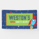 Bannière d'anniversaire en vinyle de fusée rouge et bleue dans l'espace extra-atmosphérique.