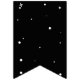 Unique, amusant, moderne et audacieux anniversaire astronaute d'aventure spatiale fête d'anniversaire bunting bannière design. La palette de couleurs noir et blanc est utilisée pour créer un thème simple mais audacieux et accrocheur de l'espace de célébration d'anniversaire thème design. La couleur dominante noire est utilisée pour représenter l'espace extérieur profond. Des dessins animés amusants illustrant des fusées spatiales, des étoiles spatiales, des météores, des étoiles tournantes, des astronautes et des planètes spatiales sont incorporés dans cette audace amusante de cette conception d'anniversaire d'aventure spatiale mondiale. Customisé avec votre propre nom ou message.