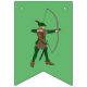 Cette bannière de style Robin des Bois comprend des lettres d'inspiration médiévale et des dessins de style vintage de Robin des Bois, Little John et Allan-a-dale.
