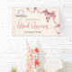Cette bannière de bienvenue pour l'ouverture grand public de l'entreprise comprend un ruban rouge aquarelle moderne sur un fond de couleur crème claire. Le design offre un espace pour votre logo.
