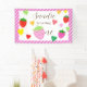 Cette jolie bannière présente des fraises rouges et roses et des coeurs d'amour colorés en rouge, rose, jaune et vert sur un arrière - plan blanc. La bannière est encadrée de rayures blanches et roses. Le nom peut être personnalisé.