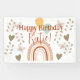 Cette bannière chère sera le point central de votre fête d'anniversaire où qu'elle soit accrochée. Avec de gros caractères indiquant "Joyeux anniversaire (nom)" et de nombreux éléments du thème d'anniversaire comme des papillons, des coeurs, des sprigs de feuilles, des ballons, et bien sûr un joli arc-en-ciel boho. Cette bannière captera les yeux de tous vos invités et donnera le ton du thème. Ramenez tout ensemble avec des plaques de papier, des tasses, des ballons, des panneaux et du papier d'emballage pour faire vraiment ressortir cet anniversaire de boho.