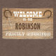 Banderole de réunion de famille à thème occidental avec polices d'ouest sauvages et icônes en fer à cheval sur un arrière - plan de grange en bois. Modifiez le nom de votre événement familial.