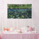 Une scène sous-marine scindée avec une vallée verte au-dessus et les profondeurs froides d'une rivière rocheuse en dessous. Les rayons du soleil dansent à travers l'eau et des bancs de poissons argentés nagent parmi les pierres et les mauvaises herbes du lit de la rivière.