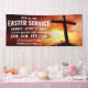Annoncez vos heures de service de Pâques avec cette grande bannière avec une croix avec un bel arrière - plan lever de soleil.