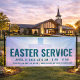 Annoncez vos Easter Service Times avec cette grande bannière avec trois croix avec un bel arrière - plan lever de soleil.
