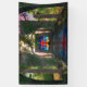 Une ancienne église en pierre se dresse en ruine au milieu de l'herbe et des fleurs d'une colline ensoleillée, mais le vitrail colorant toujours la lumière du matin avec le dessin d'une croix rouge contre un lever de soleil lumineux. Les vieilles arches en pierre sont cassées, mais les boughs d'arbres en fleurs encadrent la fenêtre.