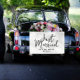 Bannière de voiture juste marié écrit à la main