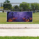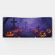 Cette banderole est montrée avec un imprimé festif de la scène de la maison hantée par les citrouilles d'Halloween. Extérieur montré. Customisez cette bannière ou achetez tel quel. Choisissez parmi de nombreuses tailles, à l'intérieur ou à l'extérieur.