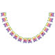 Arc-en-ciel raye comme arrière - plan sur chaque drapeau (du haut au bas : vert, jaune, orange, rouge, rose, violet, bleu). Personnalisez chaque drapeau avec votre texte. Valeurs par défaut pour ****RANDOLPH****
