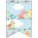 Oiseaux assis sur un fil en vert, bleu et rose. Joyeux petit anniversaire. Parfait pour fêter un premier anniversaire.