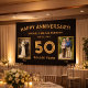 Bravo à 50 ans d'amour et de souvenirs! Cette bannière d'anniversaire noire et or est la meilleure façon de célébrer une étape dorée. Avec deux photos, le jour de votre mariage et maintenant, c’est une belle façon d’honorer votre voyage ensemble. Vous pouvez le customiser avec des noms, des dates et des images pour le rendre spécial. Que vous soyez l’hôte d’une fête du 50e anniversaire du mariage, d’un renouvellement de voeux ou d’un rassemblement en famille, cette bannière constitue un décor étonnant pour les murs d’entrée, les tables de desserts ou les cabines photo. Conçu avec une typographie élégante et un thème doré intemporel, il ajoute une touche de classe à votre célébration. Accrochez-le à l'intérieur ou à l'extérieur et laissez briller vos souvenirs !