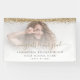 Parties scintillant d'or Script photo 2024 Graduation. Une fausse bordure de parties scintillant est en haut et Félicitations à notre Grad est dans un script élégant avec des swashes. Personnalisez facilement le texte selon vos besoins et remplacez l'exemple d'image par le vôtre.