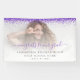 Parties scintillant violet Script photo 2024 Graduation. Une touche de scintillement avec une fausse bordure de parties scintillant au sommet et Félicitations à notre Grad est dans un script élégant avec des swashes. Personnalisez facilement le texte selon vos besoins et remplacez l'exemple d'image par le vôtre.