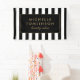 Coordonner avec le modèle de carte d'affaires Black and White Stripes Salon III et les fournitures de bureau d'ici 12 h. Votre nom ou nom d'entreprise est élégamment affiché sur un arrière - plan rayé noir et blanc pour une esthétique très chic et design. Cette bannière customisée est idéale pour la signalisation, les salons, les kiosques et bien plus encore. © 1201AM CREATIVE