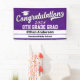 Félicitez votre diplômé de 8e année avec cette bannière violette et blanche. Le design est sportif.