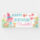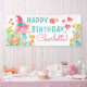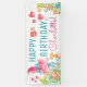 Bannière d'anniversaire de troll avec un troll aquarelle adorable et ses amis sur une couleur de fond à choisir.