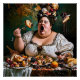 "Banquet of Chaos" surreal farbenfrohe Kunstwerke. Eine farbenfrohe surreale Satireaufnahme, die barocke Eleganz mit humorvollem Chaos verbindet. Fliegende Kuchen, Käse, Trauben, Wein und übertriebene Ausdrucksweisen erinnern an Glutton, Dekadenz und Spaß in einer lebhaften Szene.