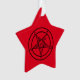 Baphomet Pentagram Ornement. Cet ornement de Noël rouge en forme d'étoile, avec un pentagramme baphomet, est parfait pour pousser l'arbre de Noël ou de vacances d'hiver ! Offrez comme un cadeau à la goth, ventilateur d'horreur, sataniste, occultiste ou sorcière dans votre vie en cadeau de vacances. L'ornement est en forme d'étoile et rouge de chaque côté avec le Baphomet Pentagram en noir de chaque côté.