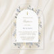 Baptême bleu feuillage acrylique invitation