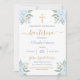 Baptême floral bleu invitation espagnole, Invitación de bautizo en español con flores azules para niño