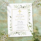 Baptême Christening Gold Cross Green Invitation